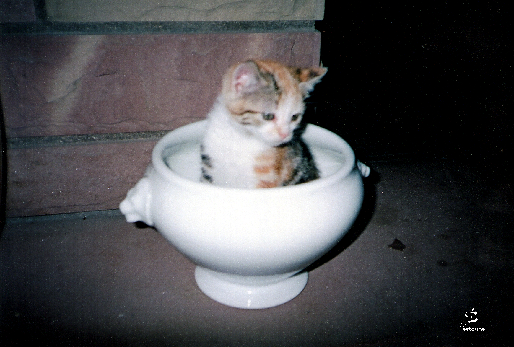 Il sortit de sa poche une petit boule de poils ébouriffés et aux babines barbouillées de lait.